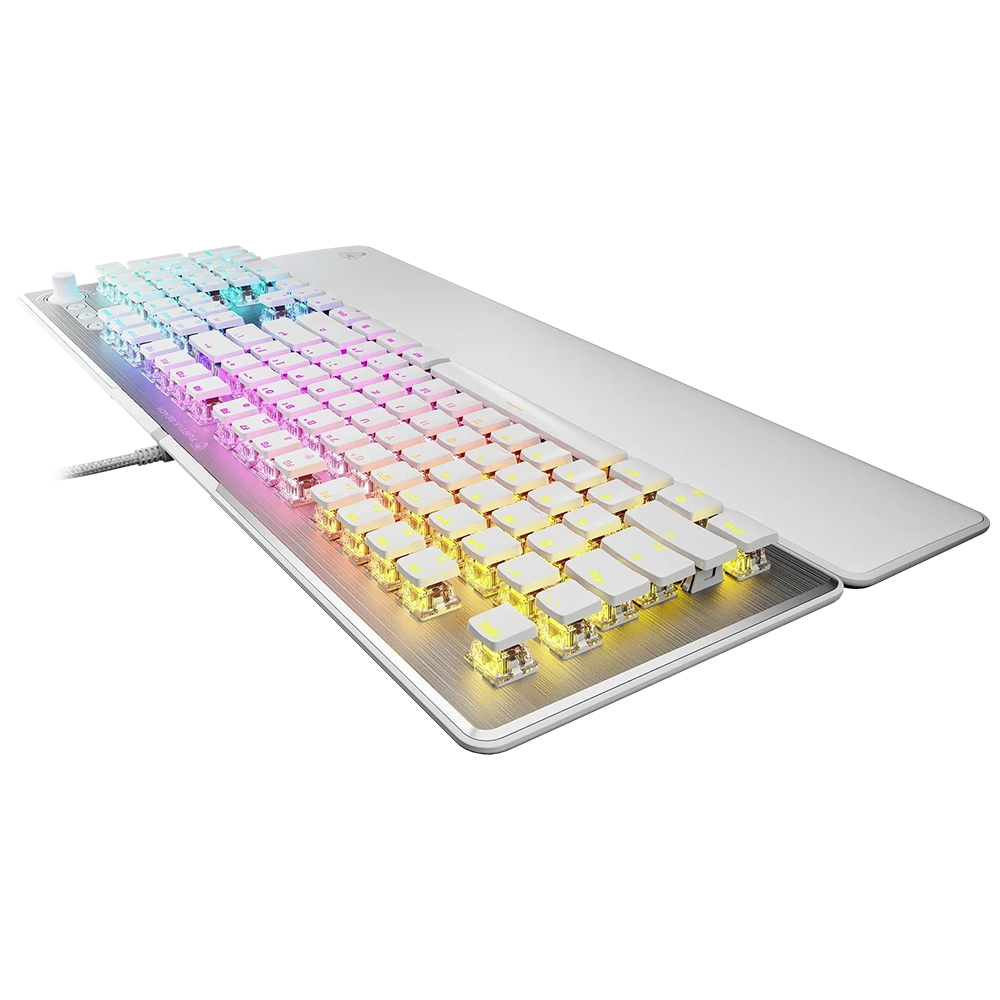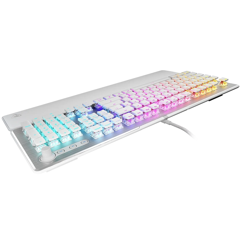 המקלדת זמינה עם מתגי TITAN II RED (לינאריים) או BROWN (טקטיליים), עם תגובה מהירה ועמידות של עד 100 מיליון הקשות. מנגנוני Easy-Shift[+]™ ותאורת AIMO RGB סוחפת מעניקים שליטה כפולה ואפקטים חזותיים מרהיבים.