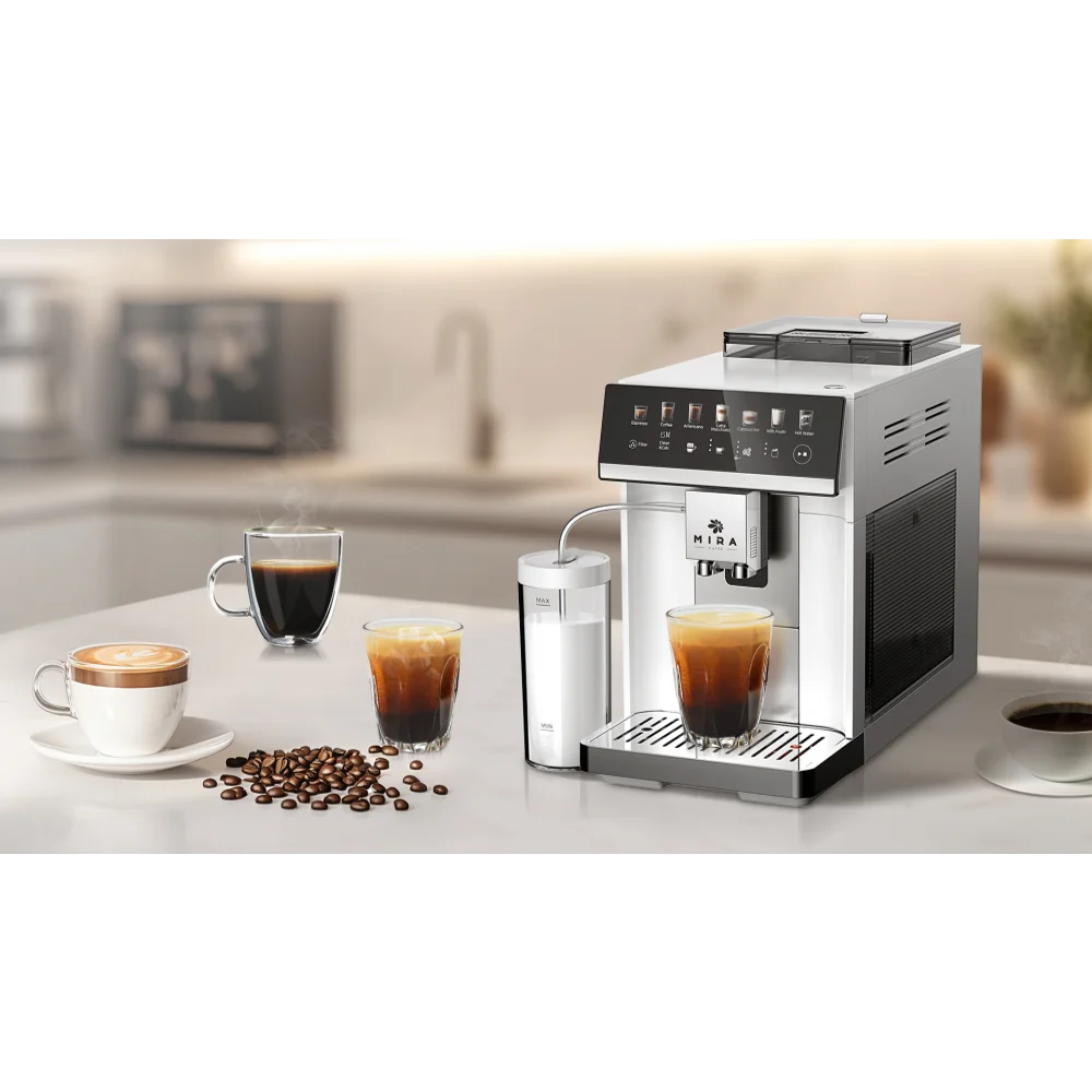 מכונת הקפה האוטומטית GENUAROMA מבית MIRA נועדה לספק חוויית קפה מושלמת ומדויקת המתאימה לכל חובבי הקפה – מהכנת אספרסו עמוק וטעים ועד לקפוצ'ינו עם קצף סמיך ואידיאלי!