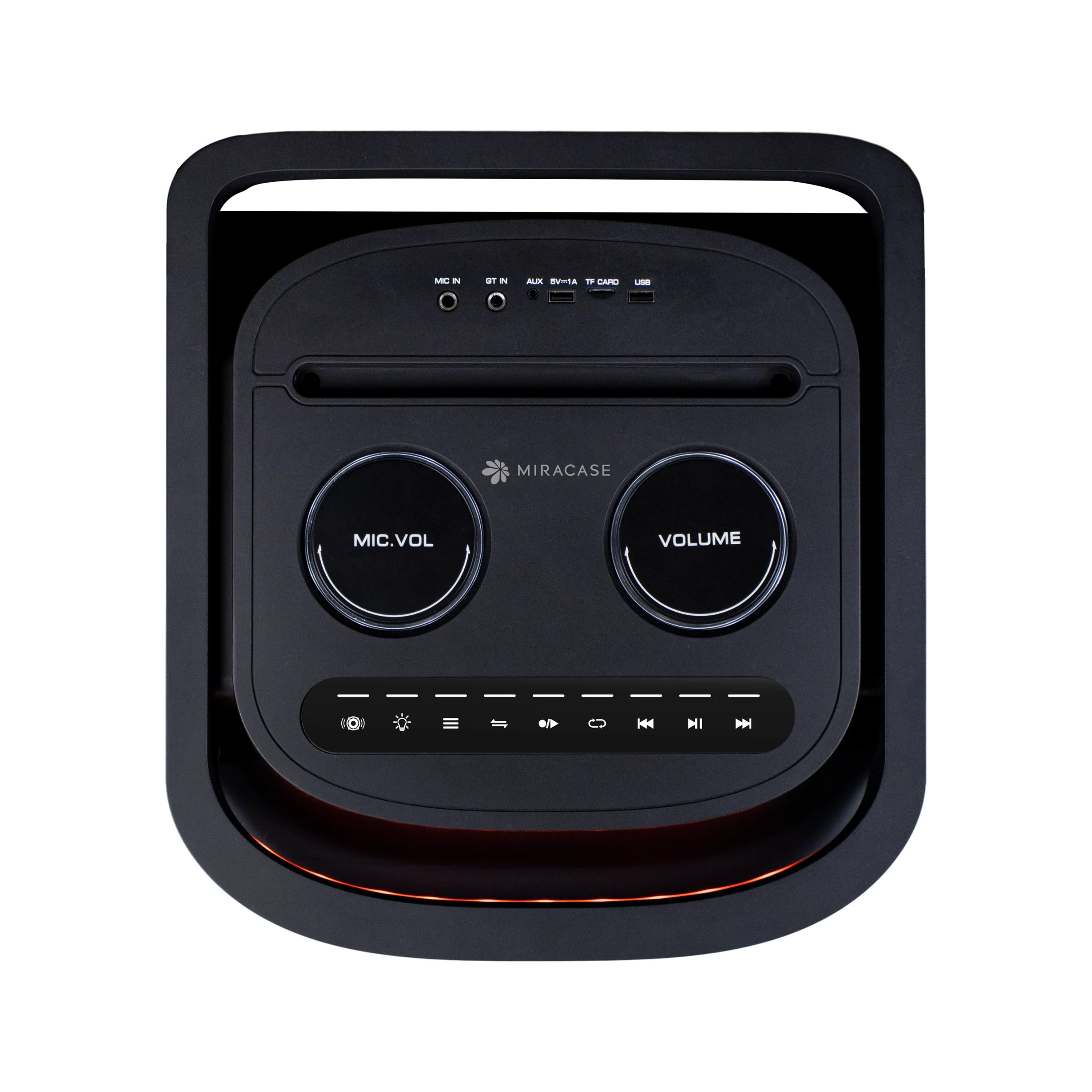 מערכת קריוקי ניידת M60 מבית Miracase עם רמקול ‎12″, מיקרופון אלחוטי, Bluetooth ‎5.3 ותאורת LED צבעונית. כוללת מגוון חיבורים וסוללה ‎6000mAh לשעות שימוש – מושלמת למסיבות, טיולים ושירה בכל מקום.