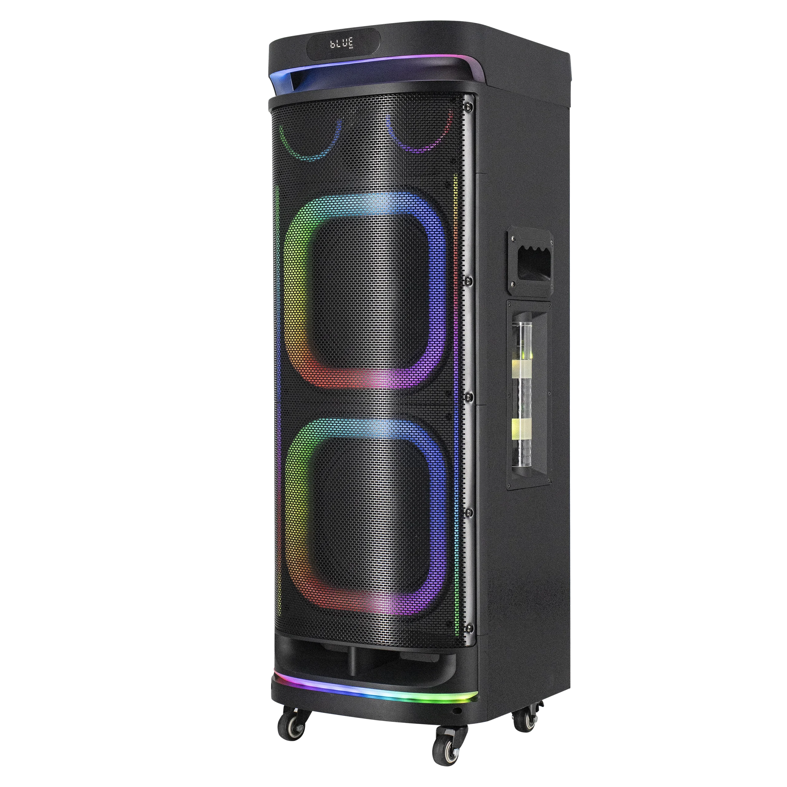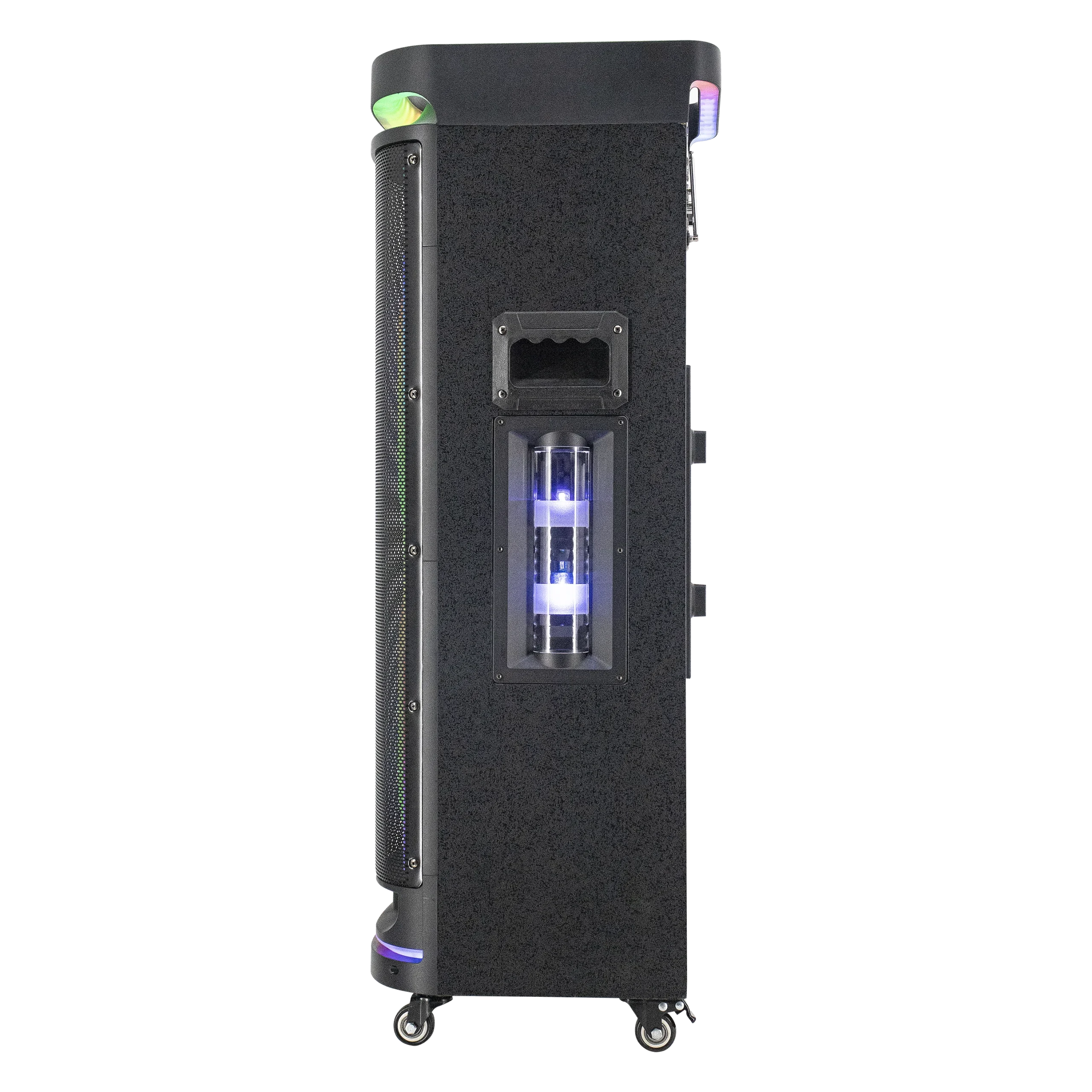 הטעינה מתבצעת באמצעות חיבור USB-C (מטען אינו כלול, מומלץ ‎30W), והעיצוב כולל גלגלים לניידות נוחה, כך שתוכלו לקחת את המוזיקה והקריוקי לכל מקום בקלות.
