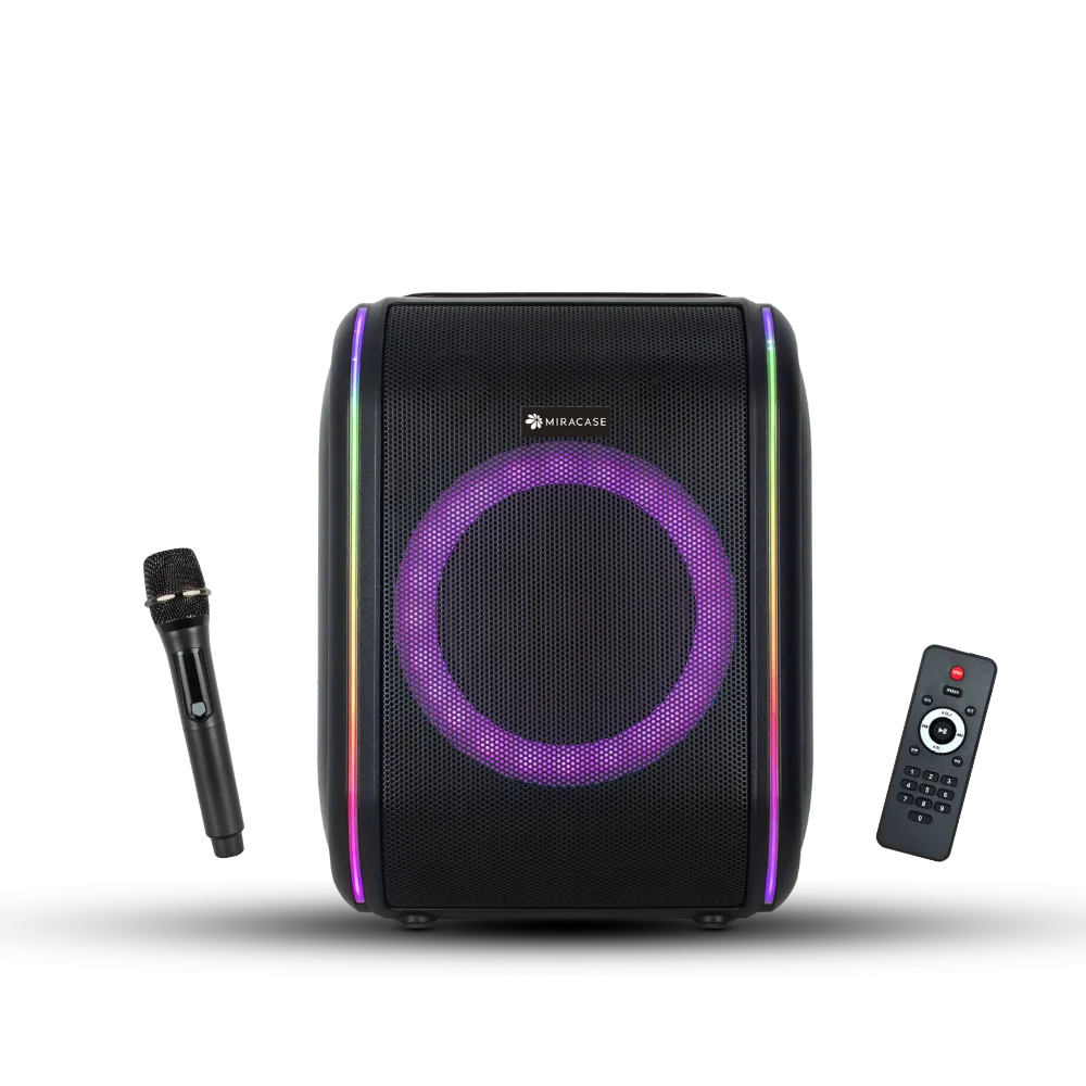 ערכת קריוקי ניידת מבית Miracase הכוללת רמקול עוצמתי עם פונקציית קריוקי מובנית. הערכה מאפשרת השמעת מוזיקה ממקורות שונים בשילוב תאורת RGB לחוויית שימוש מהנה-ומתאימה לשימוש ביתי לאירועים קטנים, עם שליטה נוחה ואפשרויות חיבור מגוונות!