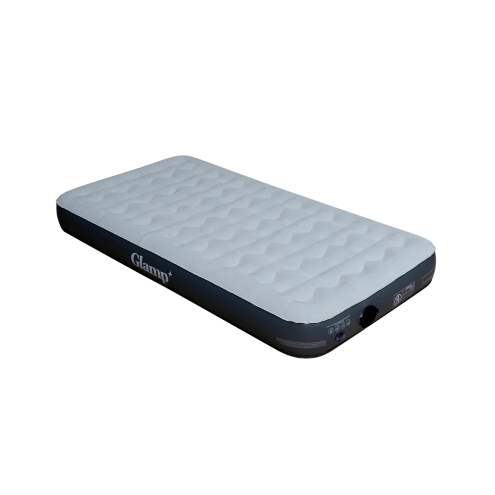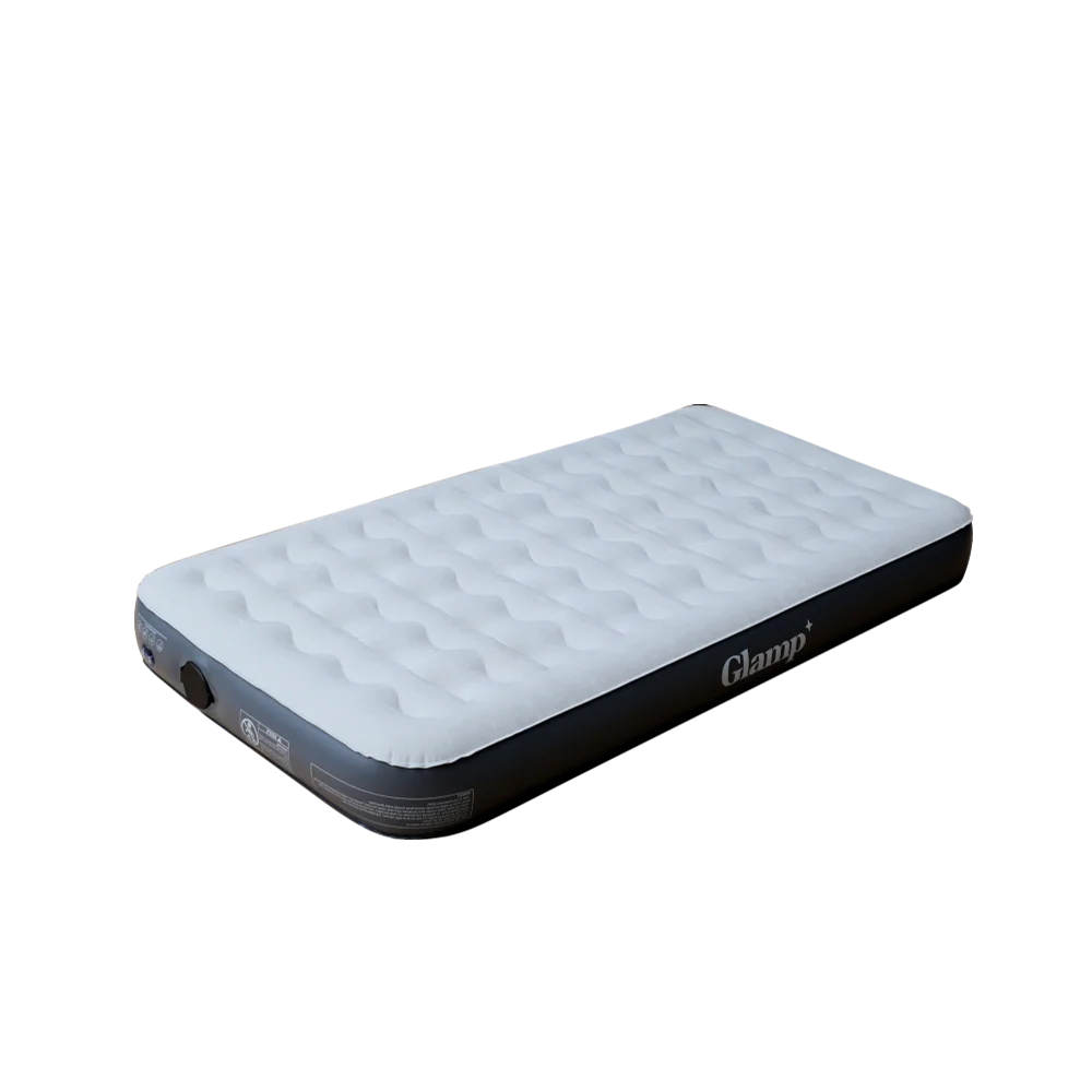 מזרן יחיד דק מתנפח GSSAB22 מבית GLAMP מציע חוויית שינה יוקרתית ונוחות מושלמת, בין אם בבית ובין אם בשטח מזרון יחיד מתנפח מבית Glamp, בעל שכבת Pillowtop נוחה, ציפוי עליון רך מסוג Flocked ומבנה תאי אוויר לתמיכה אחידה – אידיאלי לבית, לאירוח ולקמפינג.